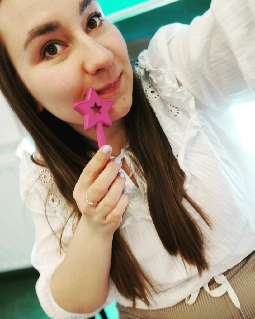 Praca jako logopeda jest dla mnie jednocześnie wspaniałą przygodą, ale też wyzwaniem, ponieważ kształtuje niezwykle ważny obszar w życiu każdego człowieka – język oraz komunikację z drugim człowiekiem. Terapię logopedyczną planuję w taki sposób, aby była dla dziecka świetną zabawą, w czym pomagają mi własnoręcznie tworzone pomoce logopedyczne. Staram się być terapeutą w myśl słów Williama Saroyana: „Dziecko poszukuje dziecka w każdym kogo spotka. Jeśli znajdzie je w dorosłym, podoba mu się ta osoba więcej niż inne”.